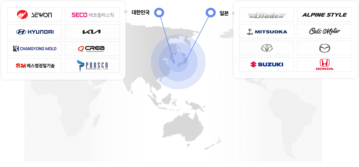 DS메탈은 금형 및 부품을 일본 주요 완성차 OME 및 Tiger-1 벤더에 공급하며,